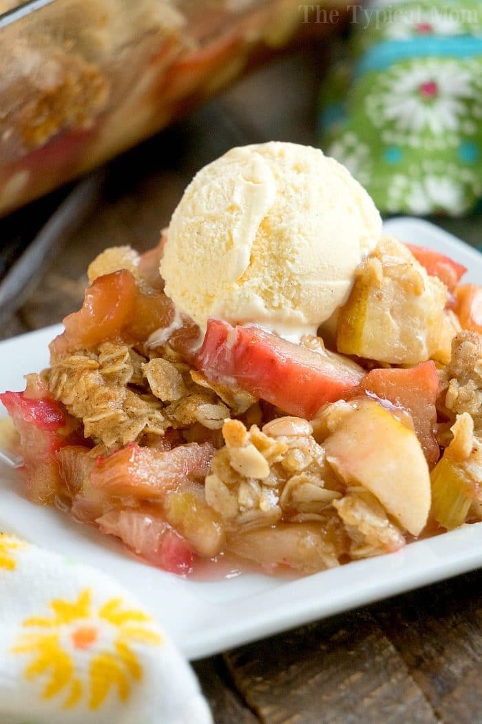 Served warm with ice cream with any remaining crumbs or oats is how we serve this or if you want to know how to bake whole apples with a bit of rhubarb inside we have tips for that too.. Once it’s lightly browned take it out and allow to cool a bit to solidify. Add a scoop of vanilla ice cream on top when serving if you dare!