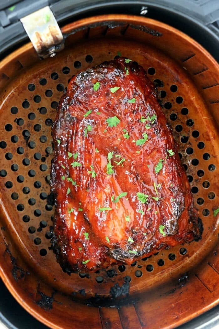 How to cook pork ribs in air fryer with dry rub for fall off the bone meat. If you made our Ninja foodi ribs now is the time to air crisp the whole time topped with barbecue sauce.