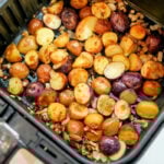Air fryer roasted potatoes has become our favorite side dish. Not only can you get the insides tender and delicious but crispy on the outside! We half baby potatoes, garlic and air fryer onions together to cook this up for dinner almost weekly.
