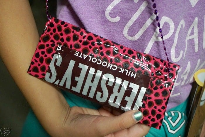 Then it was time for dinner and night time activities!! We were broken up into groups and rotated from making s’mores with friends, to making a cute duct tape/candy wrapper purse craft.