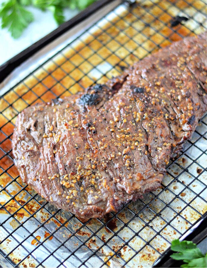 Below we will share the instructions on how to broil this piece of meat in the oven. Using the broiler setting is key for the perfect texture. When done make sure you remove Melt-in Your Mouth Steak in the Oven, tent with foil and let rest for a few minutes before cutting against the grain into thin slices.