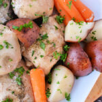 For a faster method you could try our Instant Pot bone in chicken thighs where you could easily put whole red potatoes in at the same time. You just put chicken on top of them so they don’t touch the bottom and trigger the burn function. I love both. Crock pot recipes are just great when you know you’ll be exhausted at the end of the day.