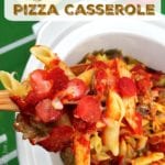 You have got to try this easy slow cooker pizza casserole recipe with jar sauce. It is amazing and my kids all time favorite meal! So easy to make this Crockpot casserole and great for dinner or a party with kids. You really can’t go wrong combining pizza and pasta together!