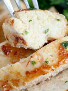 Using an aluminum pan 9×13″ is seriously the best. If you had a rather large cast iron pan you could use that but may need to cut this in half to get it to fit and not overlap too much. When done you can move it to a trivet to serve on the table, then throw it away when it’s all gone!