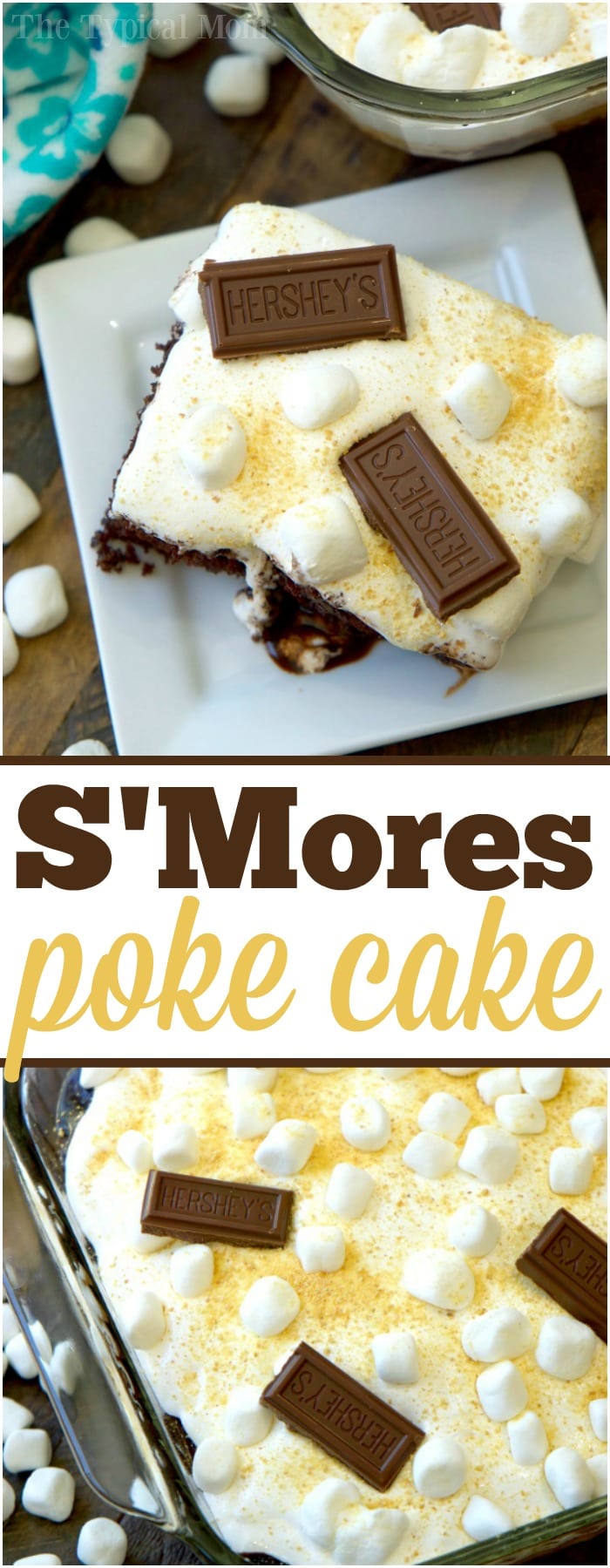 This is the most amazing easy smores poke cake recipe ever! If you know how to make a poke cake but want to make one with chocolate sauce seeping inside and marshmallows and graham crackers on top, this is the classic dessert with no campfire required.