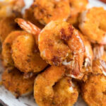 Air fryer fried shrimp in Ninja Foodi or Cosori! Lightly breaded and seasoned, no egg, you can make crispy shrimp under 10 minutes. No frying required.