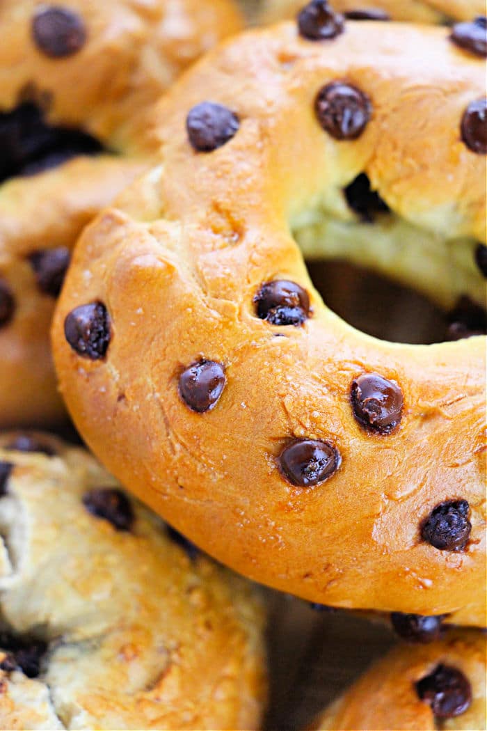 WW 2 ingredient bagels with Greek yogurt and self rising flour are the bomb! Baked in the oven, these are homemade and come out soft and chewy with no yeast needed. How to make plain, garlic, everything or chocolate chip bagels for breakfast.